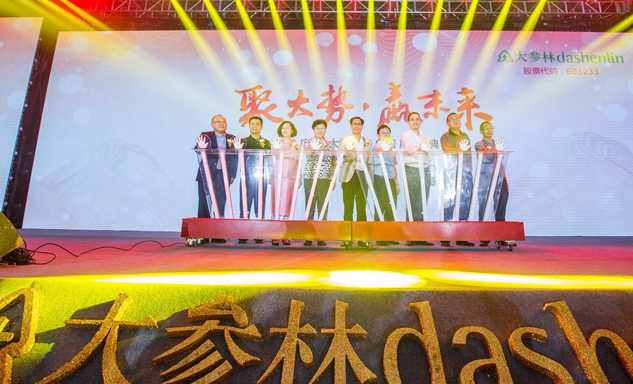 德扑之星药业集团董事长刘景萍女士与大参林医药集团董事长柯云峰先生、中国医药商业协会执行会长付明仲女士等嘉宾共同开启了“聚大势•赢未来"大参林工商合作峰会的大幕。