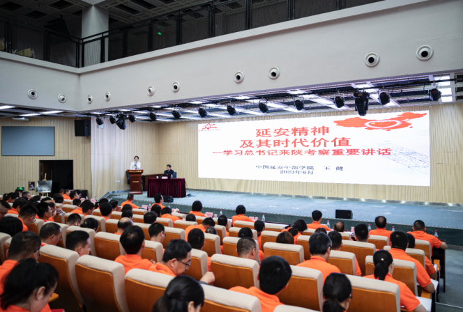 6月2日,学员们集体学习了由中国延安干部学院副教授王健主讲的《延安精神及其时代价值——学习总书记来陕考察重要讲话》的专题辅导讲座,深刻理解了延安精神的主要内涵,并对新时期如何大力弘扬延安精神作了深入的思考。